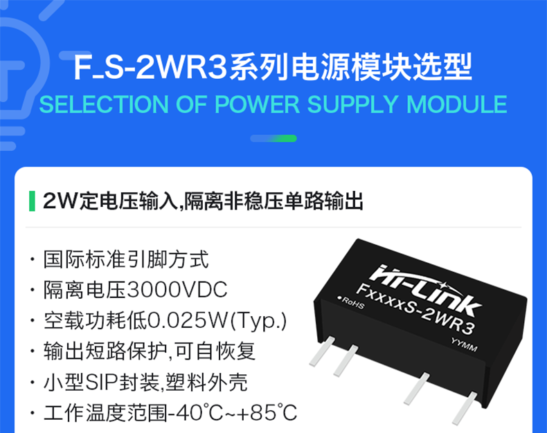 F_S-2WR3系列-----是海凌科爲(wèi)客戶提供小體積,高效率的微小功率,定電壓輸入,隔離非穩(wěn)壓,單路輸出,DC/DC模塊電源。