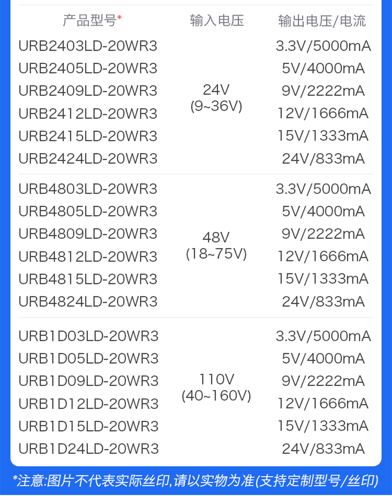 UR(A)B LD-20WR3 系列產品輸出功率爲 20W,4:1寬電壓輸入範圍,效率高達 91%,1500VDC 的常規(guī)隔離電壓,允許工作溫度-40℃to +85℃,具有輸入欠壓保護,輸出過壓、過流、短路保護功能,裸機滿足 CISPR32/EN55032CLASSA,廣泛應用於醫(yī)療、工控、電力、儀器儀表、通信、鐵路等領域。