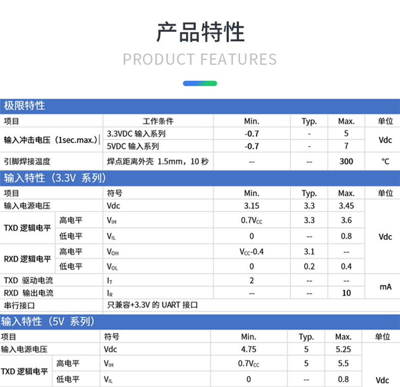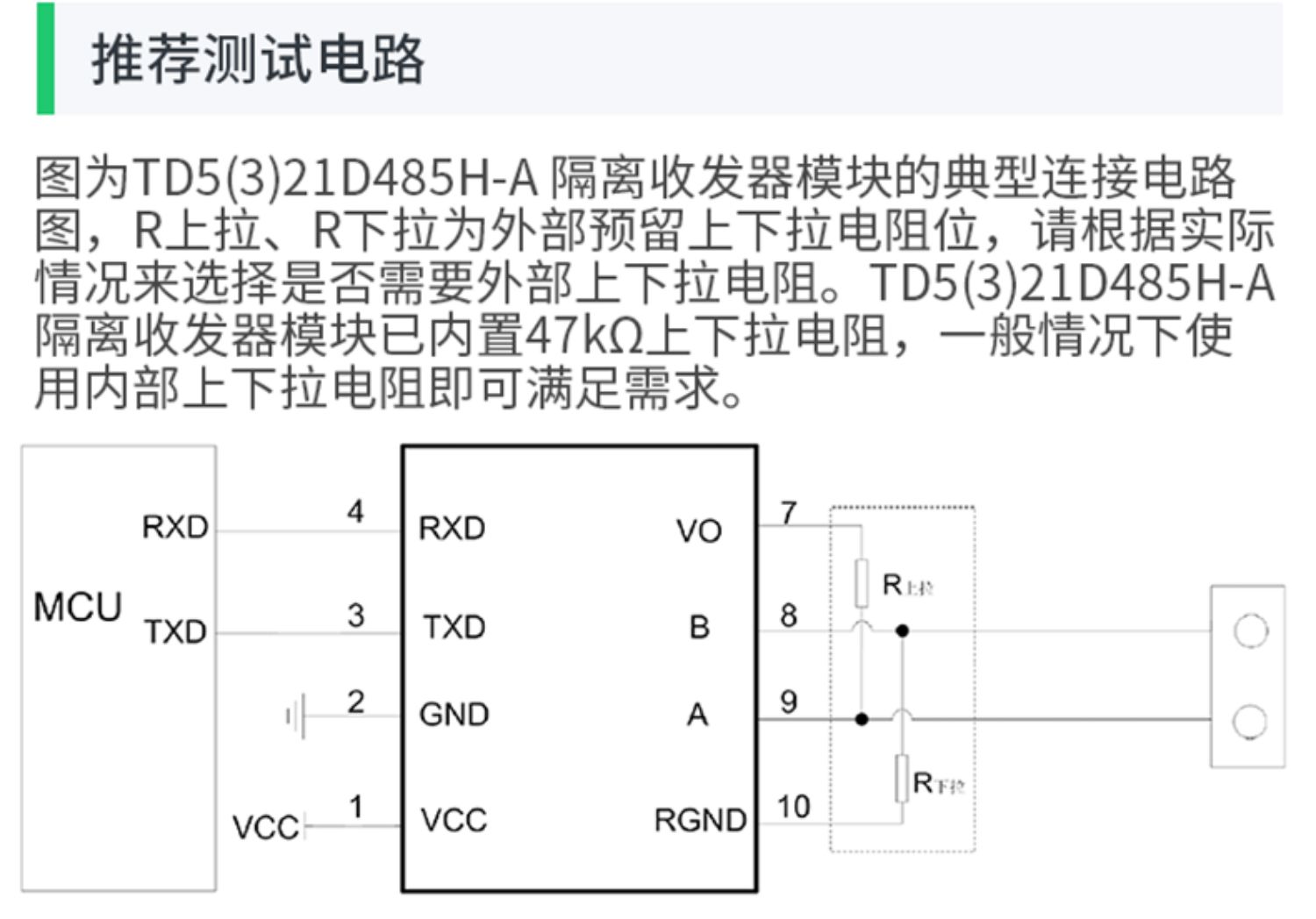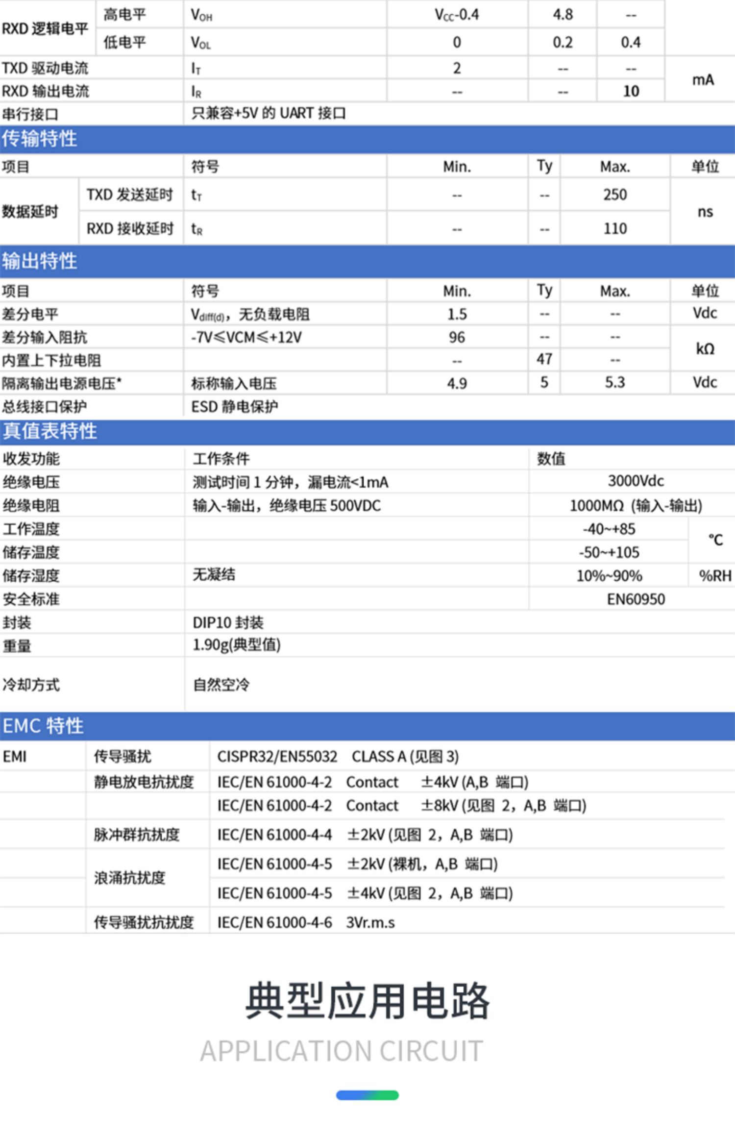 D321D485H-A/TD521D485H-A,主要功能在於將邏輯電平轉換爲RS485協(xié)議的差分電平,實現(xiàn)信號隔離,是-款採用IC集成化技術,實現(xiàn)了電源隔離、信號隔離、RS485通信和總線保護於一體的RS485協(xié)議收發(fā)模塊。產品內置定壓隔離電源,可實現(xiàn)3000VDC電氣隔離。此外,產品具有自動切換收發(fā)功能,不再需要通過CON腳進行收發(fā)控制,在一定程度上減少了設計的複雜性。