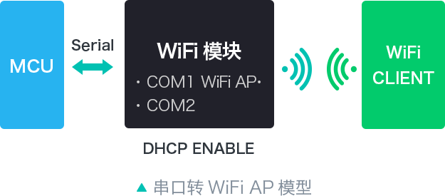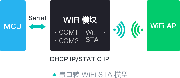 ·此模式下,WiFi設備能連接到模塊AP,成爲WiFi局域網(wǎng)下的設備。