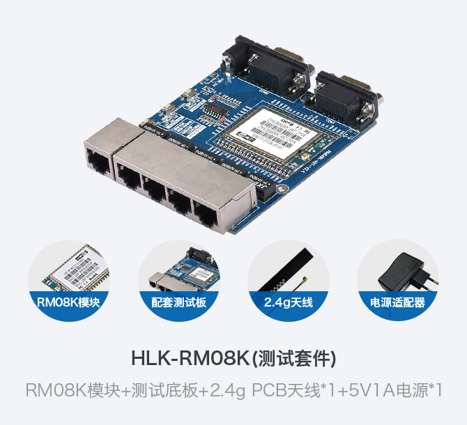 RM08K模塊+ 功能測試底板+5V1A電源適配器+2.4G天線*1(標準套件)