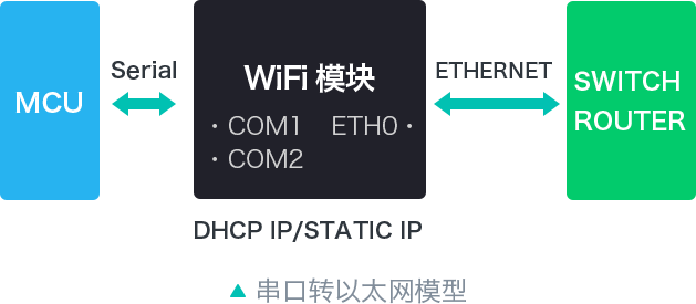 產品功能分爲:默認模式、串口轉以太網(wǎng)、串口轉WiFi STA、串口轉WiFi AP、串口轉WiFi CLIENT及串口轉有線或無線橋接。