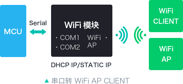 ·此模式下,WiFi設備能連接到模塊,成爲WiFi局域網(wǎng)下的設備。