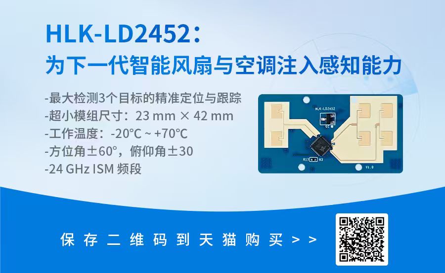 讓空調(diào)懂人在哪,讓風(fēng)扇對(duì)人送風(fēng)! 發(fā)佈時(shí)間:2025-10-28 02:51 每當(dāng)夏日來(lái)臨,空調(diào)與風(fēng)扇就會(huì)成爲(wèi)我們生活中不可或缺的清涼夥伴。然而,傳統(tǒng)設(shè)備往往無(wú)法智能感知人的位置與動(dòng)態(tài),導(dǎo)致直吹、能耗高、體驗(yàn)差等問(wèn)題。如今,隨著智能家居技術(shù)的發(fā)展,空調(diào)與風(fēng)扇也迎來(lái)了“感知智能”的革新—HLK-LD2452多目標(biāo)識(shí)別雷達(dá)模塊,正是推動(dòng)這一變革的核心傳感器。 查看詳情
