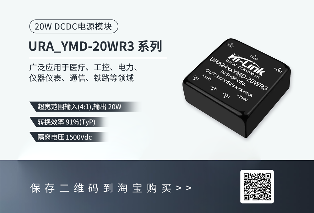 URA_YMD-20WR3 系列電源模塊,20W功率的一款電源模塊,共有18款型號(hào),輸入輸出外觀相同,在輸入電壓、輸出電壓方面給了用戶更多的選擇,大小都只有20.30x31.80x12.0mm,支持定製,可快速批量。