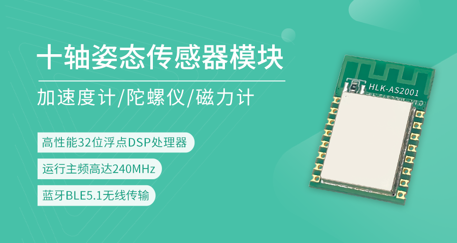 海凌科全新推出HLK-AS2001十軸姿態(tài)傳感器模塊,集成加速度計(jì)、陀螺儀和磁力計(jì),自帶BLE5.0藍(lán)牙,開發(fā)簡單,應(yīng)用廣泛。
