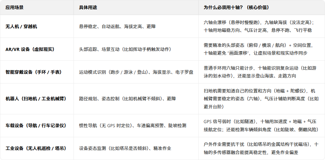 核心優(yōu)勢:掃地機需要知道自己的位置和方向(地磁 +陀螺儀),機械臂需要穩(wěn)定的姿態(tài)(六軸),氣壓計輔助判斷高度(比如避開臺階)