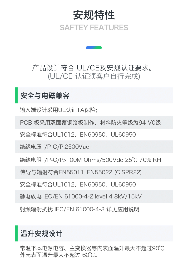 滿足UL、CE 要求;產(chǎn)品設(shè)計(jì)滿足 EMC 及安規(guī)測試要求
